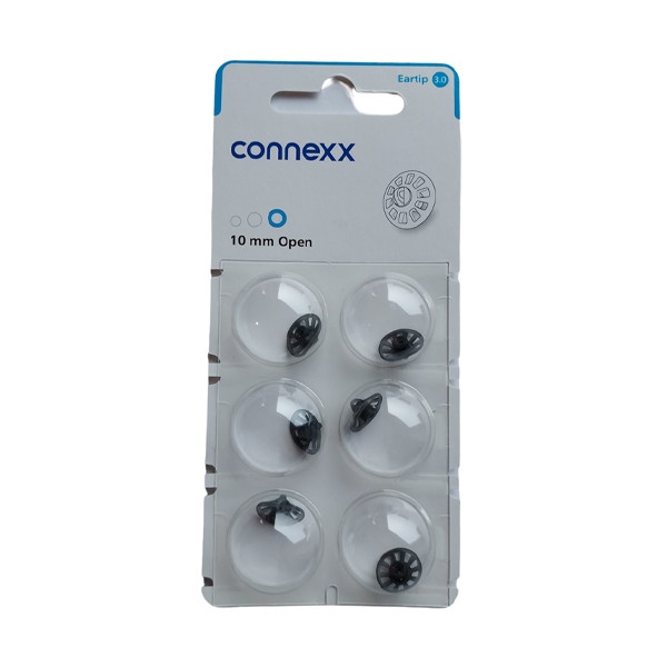 De Eartips 3.0 worden geleverd in een blister van 6 stuks. De open eartips zijn verkrijgbaar in 3 verschillende maten: 5mm, 7mm en 10mm. De Eartips in de verpakking zijn maat 10mm.