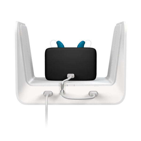 De PerfectDome is geschikt voor alle typen hoorapparaten en opladers. Het is een gesloten systeem dat een unieke fucnite heeft, namelijk het opladen tijdens onderhoud met de geïntegreerde aansluiting. Het formaat van dit droogsysteem biedt voldoende ruimte aan alle moderne laadstations.