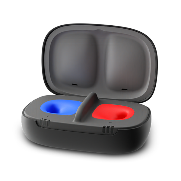 Dit is de oplader voor de Audio Service LI 7 hoorapparaten. Het opladen gebeurt inductief. Dit betekent dat bij het plaatsen van de apparaten in de oplader ze altijd opgeladen worden. Er zijn geen contactpunten aanwezig. Het opladen start automatisch bij plaatsing.