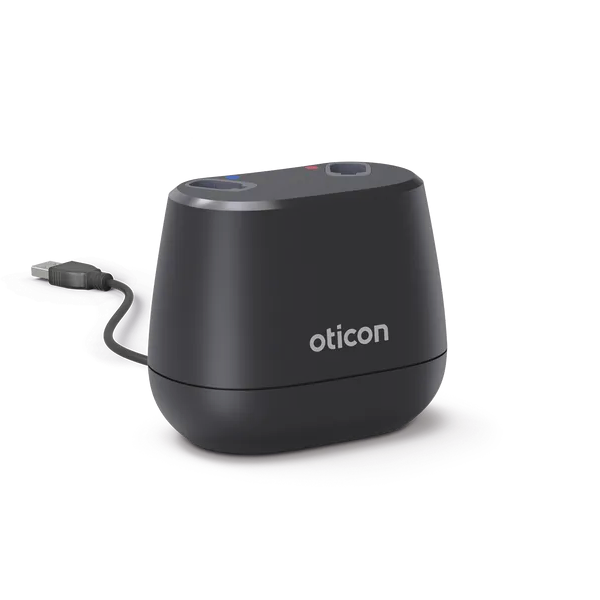 Oplader geschikt voor de Oticon Intent miniRITE R hoorapparaten.