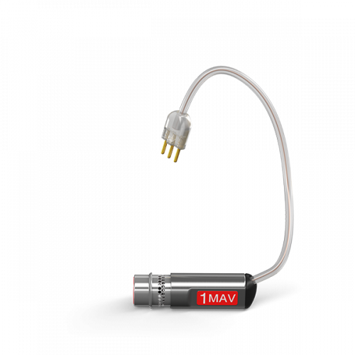 De receiver wordt met een titantium slimtip (schaaltje) aangeleverd. Titanium is dunner dan acryl en hiermee wordt ruimte bespaard in de gehoorgang. De receivers zijn tot nu toe enkel beschikbaar voor de oplaadbare Phonak Paradise hoortoestellen.