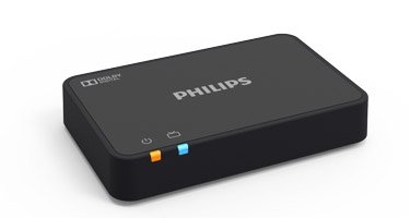 De Philips TV Adapter streamt geluid van de televisie naar Philips Hearlink in premium geluidskwaliteit.